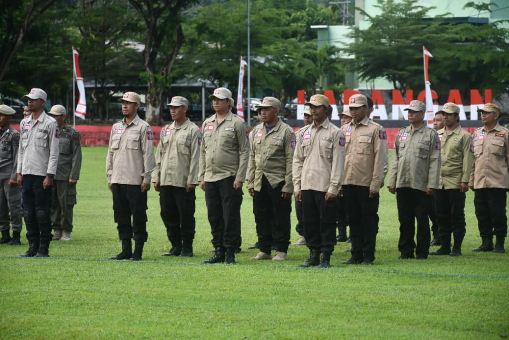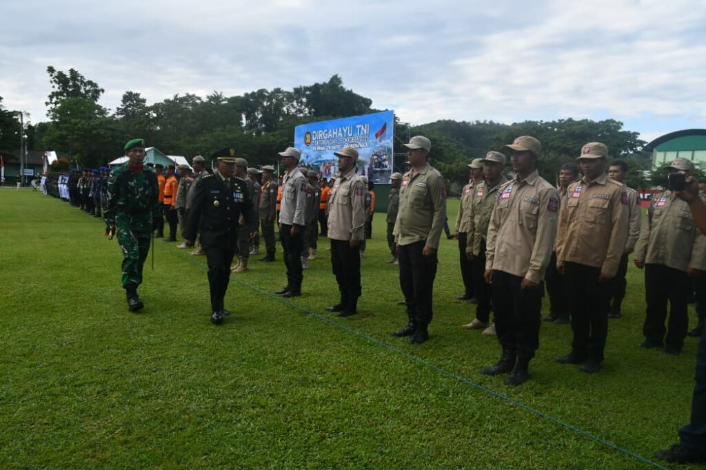 Mamuju — Taruna Siaga Bencana (Tagana) Sulawesi Barat turut menghadiri upacara peringatan Hari Ulang Tahun ke-80 Tentara Nasional Indonesia yang dilaksanakan di Lapangan Makorem 142/Tatag, Mamuju, Minggu, 5 Oktober 2025.
