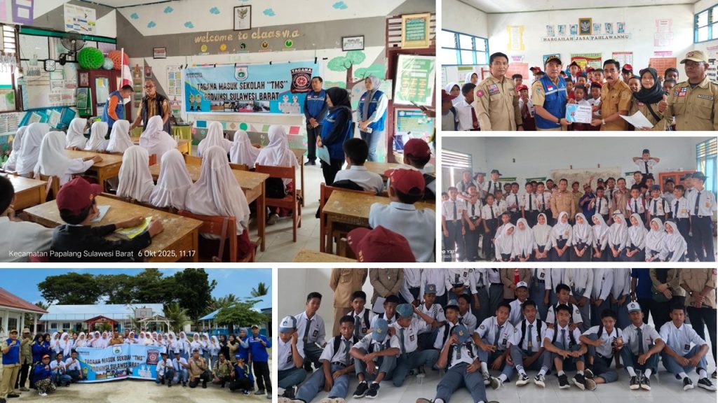 Mamuju, 8 Oktober 2025 — Dinas Sosial Provinsi Sulawesi Barat kembali melaksanakan kegiatan Tagana Masuk Sekolah (TMS) sebagai bagian dari upaya edukasi dan mitigasi bencana sejak dini di kalangan pelajar. Kegiatan ini berlangsung selama tiga hari, mulai tanggal 6 hingga 8 Oktober 2025, dan menyasar 15 sekolah di tiga kecamatan yang ada di Kabupaten Mamuju.